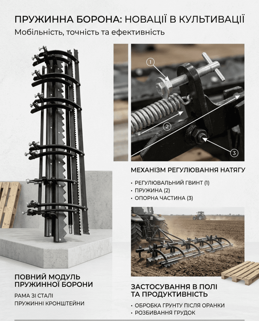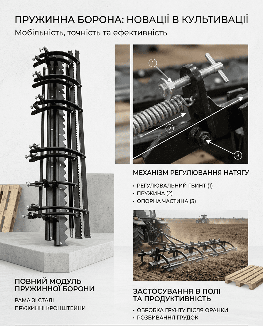 Пружинна борона з регульованою вирівнювальною планкою
